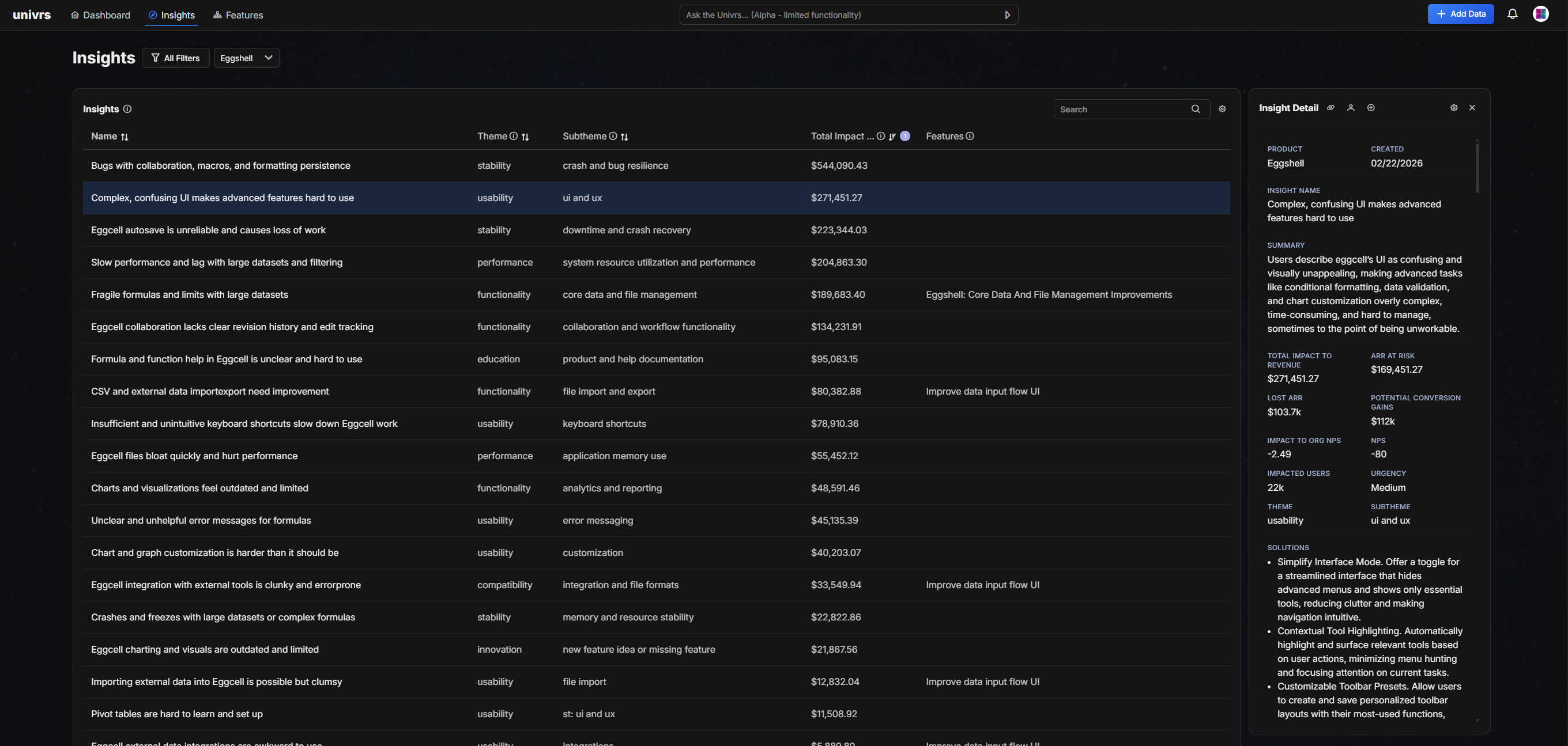 Univrs.ai enables an end-to-end workflow from raw feedback to prioritized roadmap decisions.